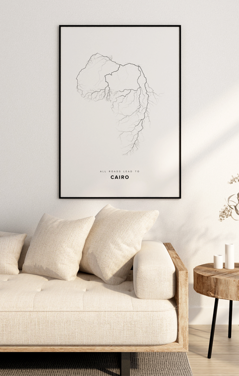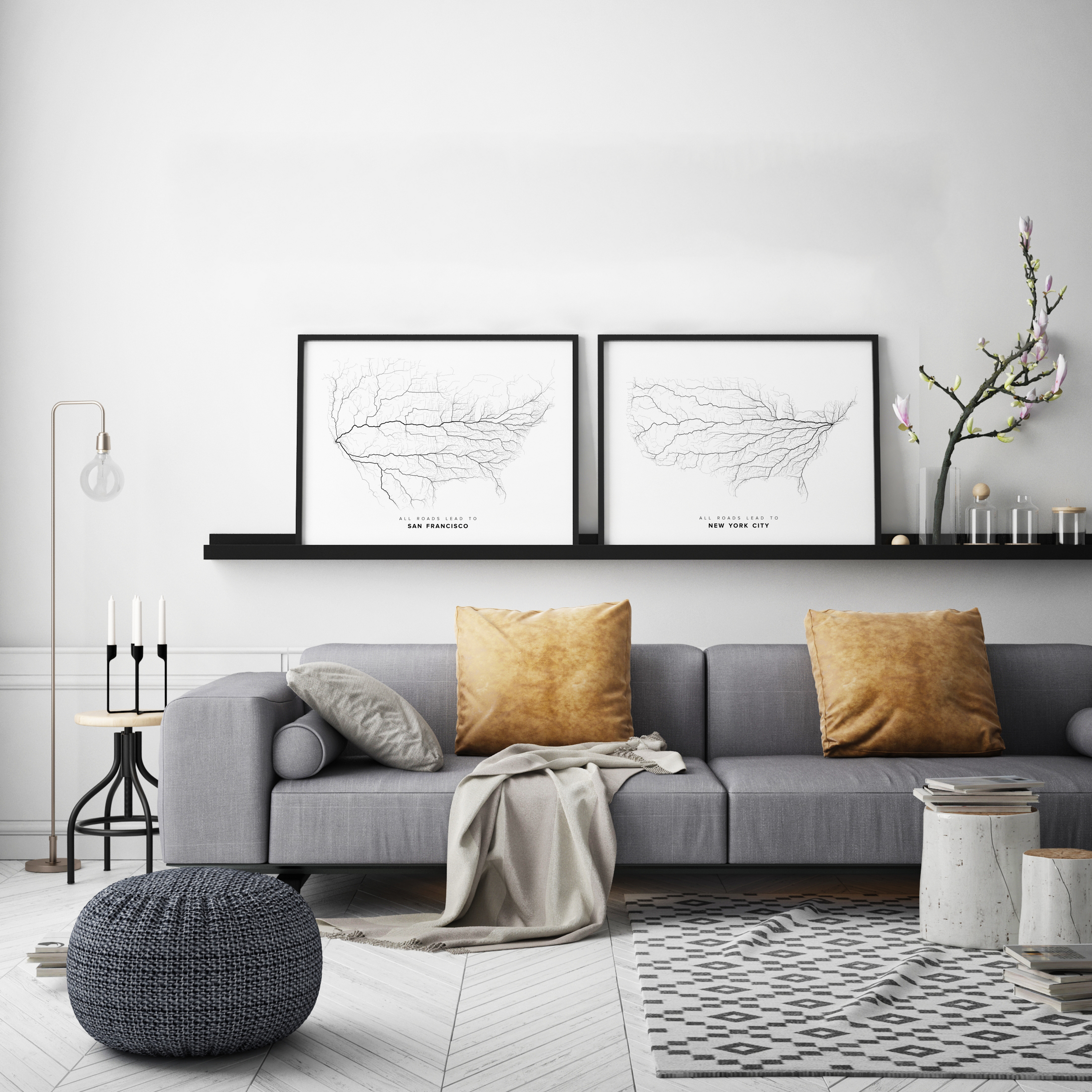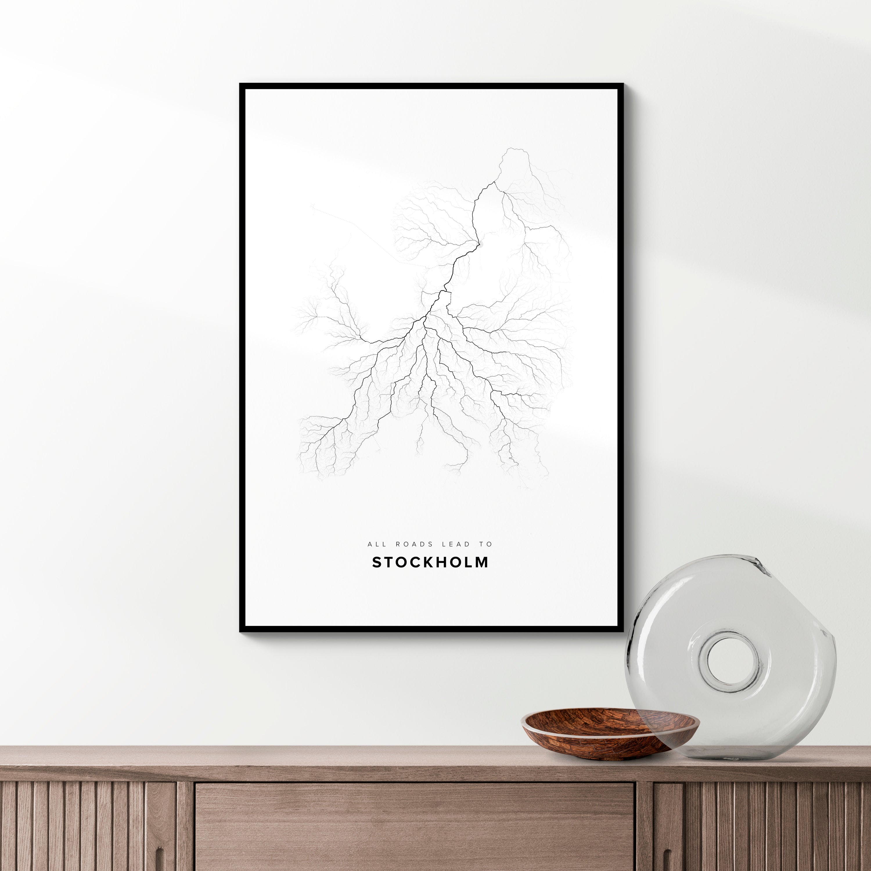 Unique minimalist maps showing all roads leading to, or coming from, your special place.