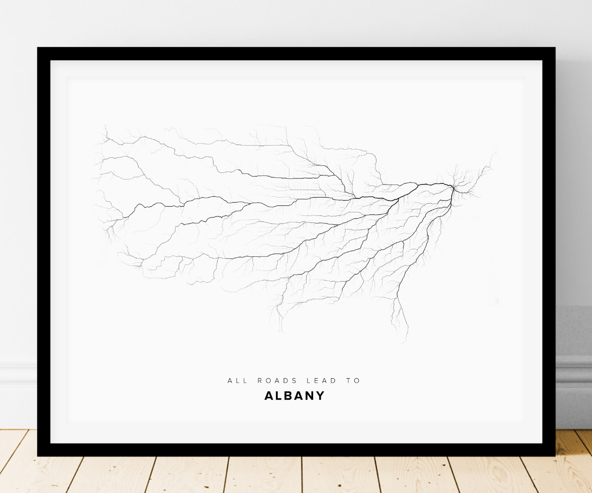 All roads lead to Albany (United States of America) Fine Art Map Print