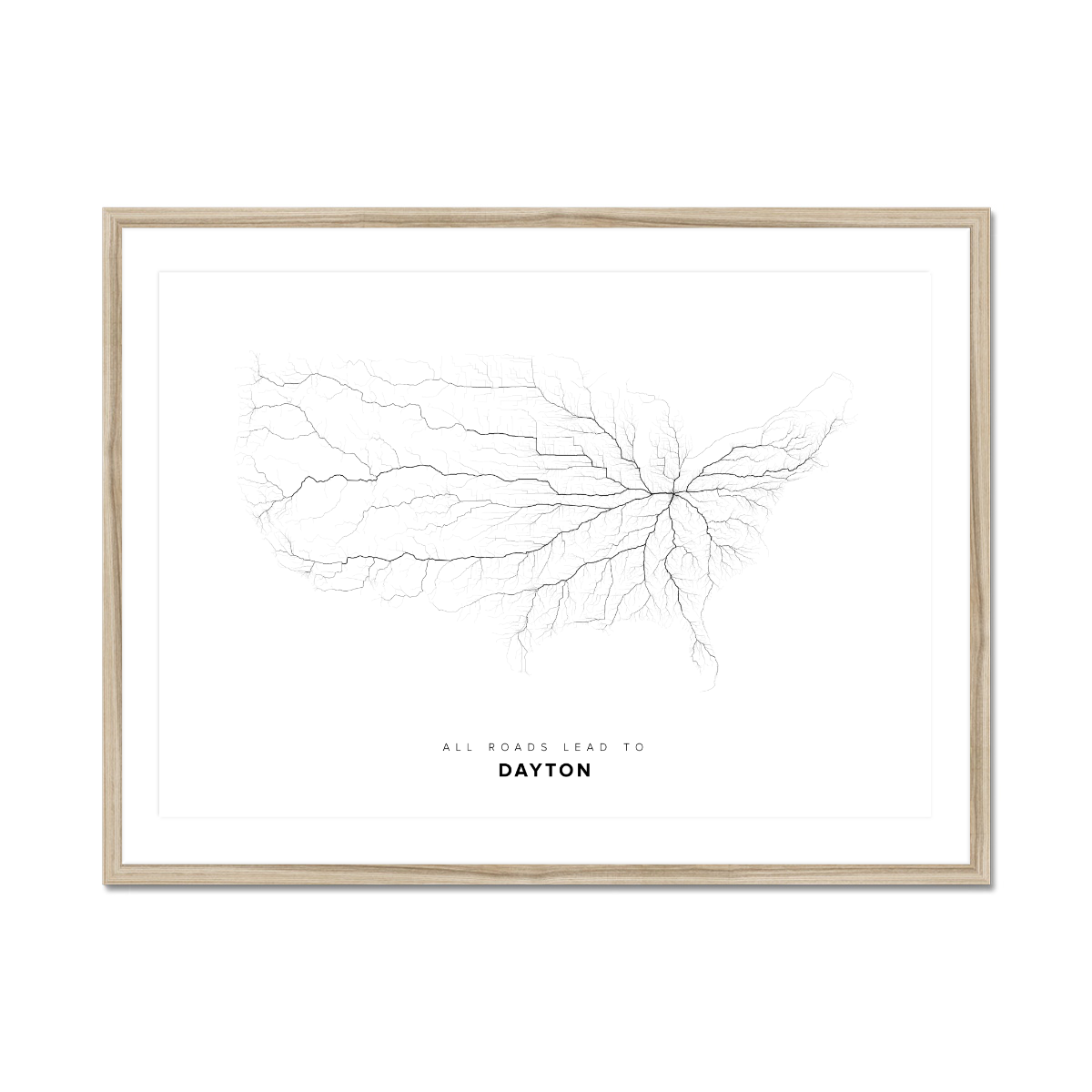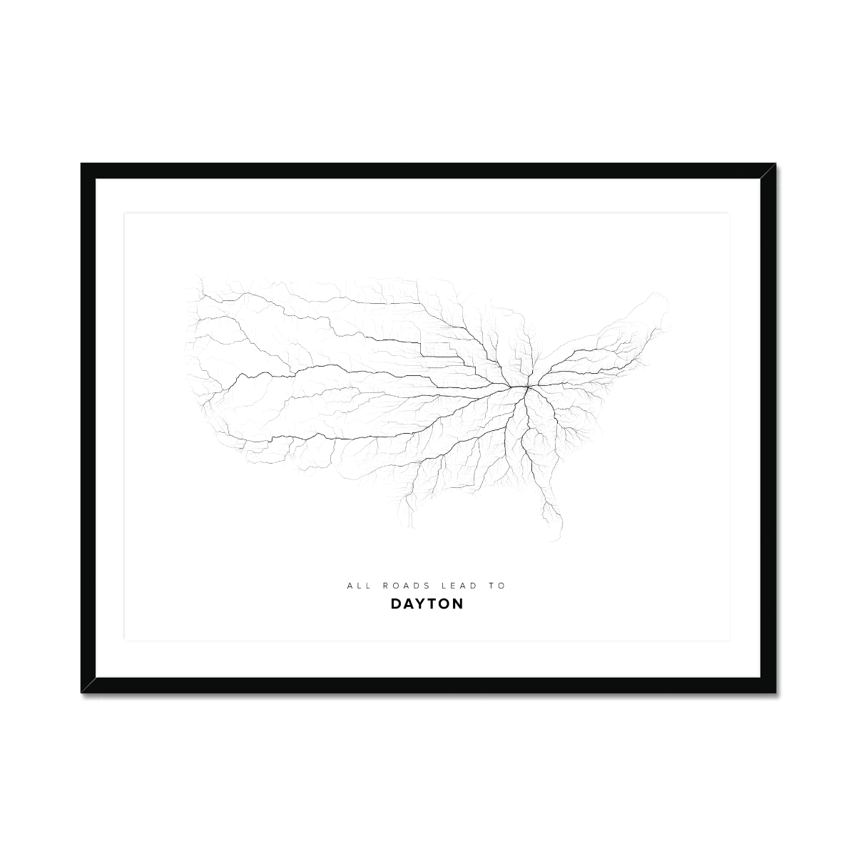 All roads lead to Dayton (United States of America) Fine Art Map Print