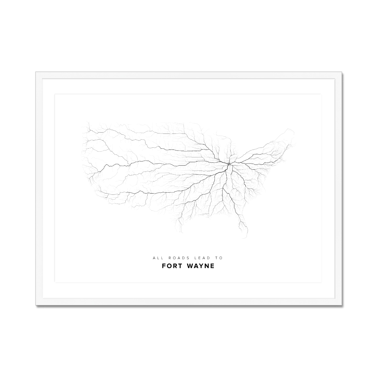 All roads lead to Fort Wayne (United States of America) Fine Art Map Print