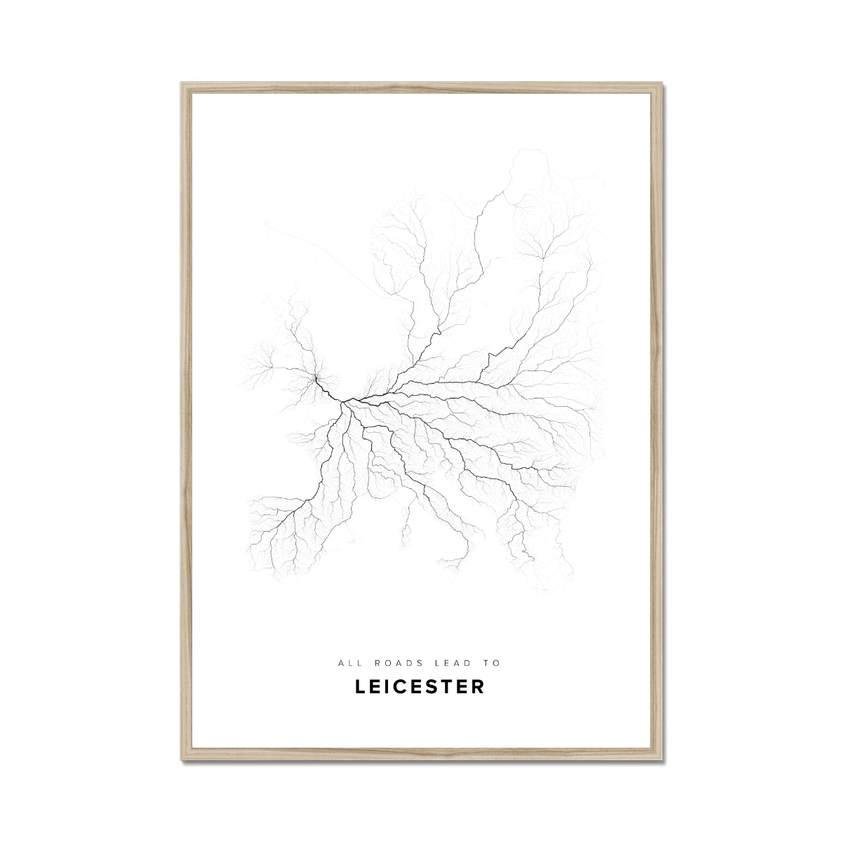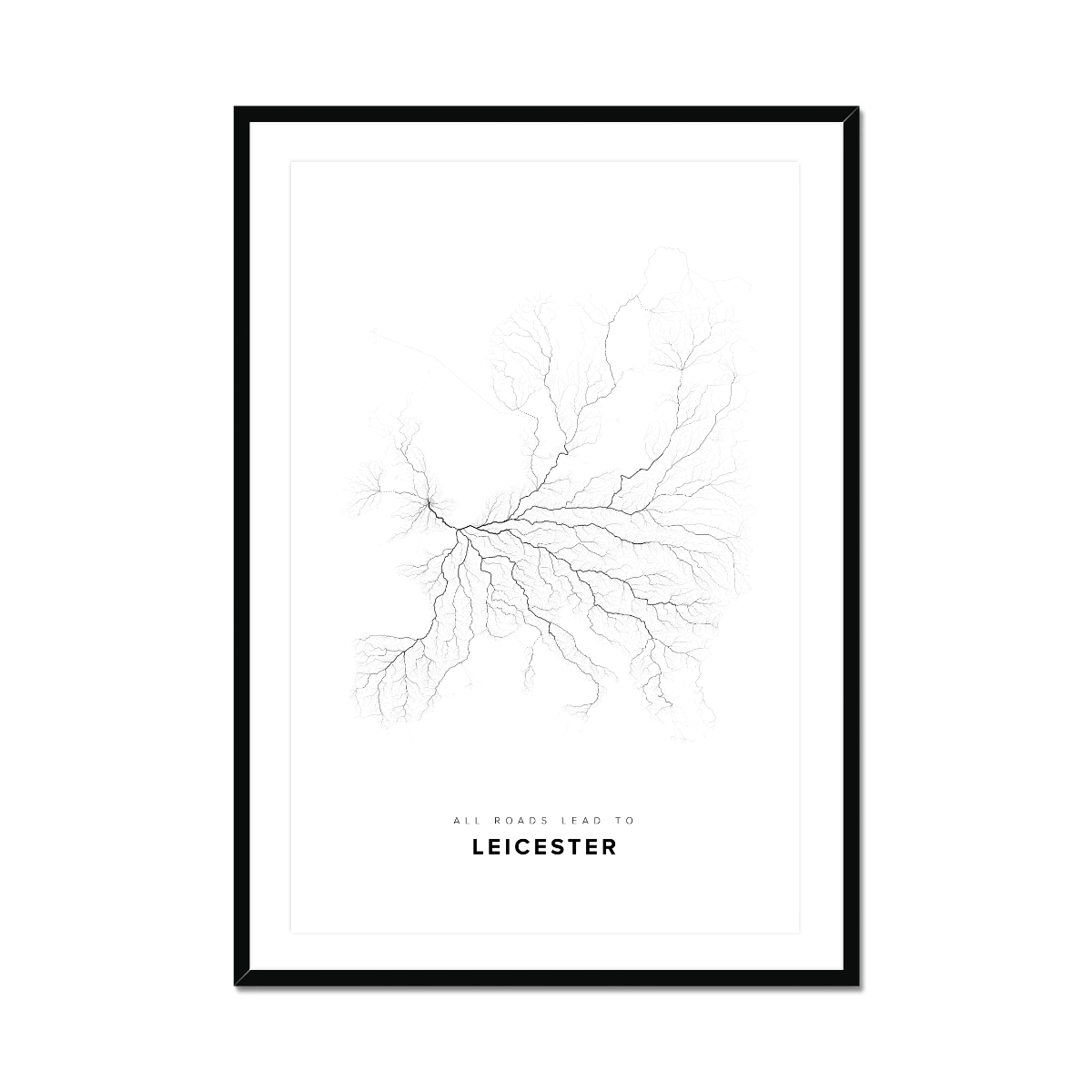 All roads lead to Leicester (United Kingdom of Great Britain and Northern Ireland) Fine Art Map Print