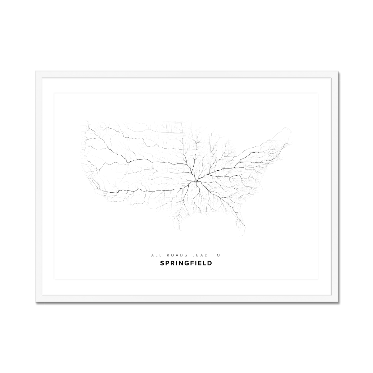 All roads lead to Springfield (United States of America) Fine Art Map Print