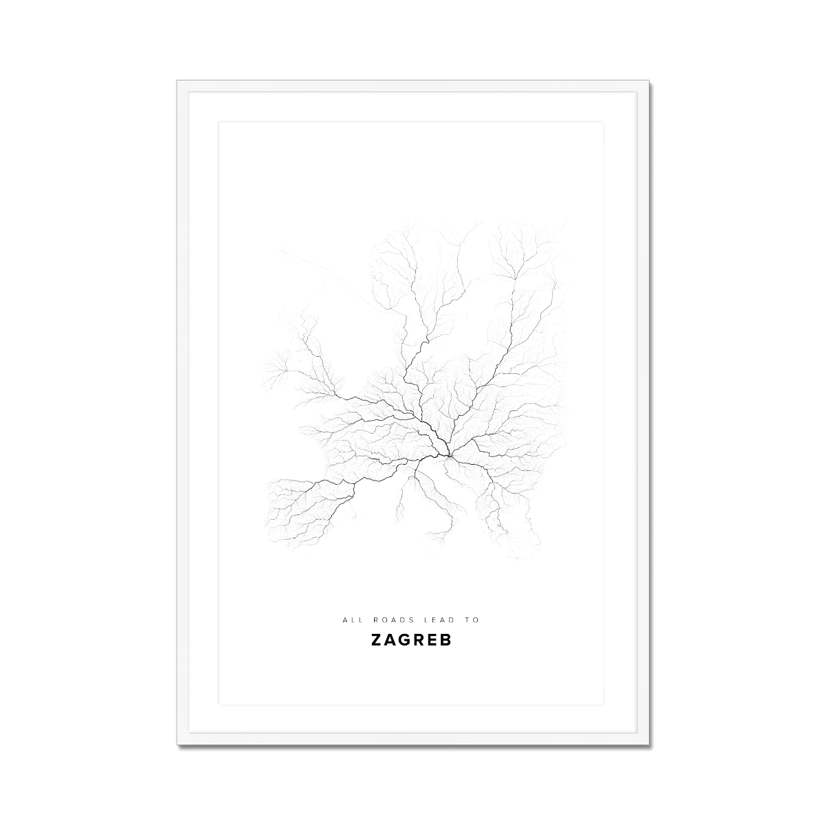 All roads lead to Zagreb (Croatia) Fine Art Map Print