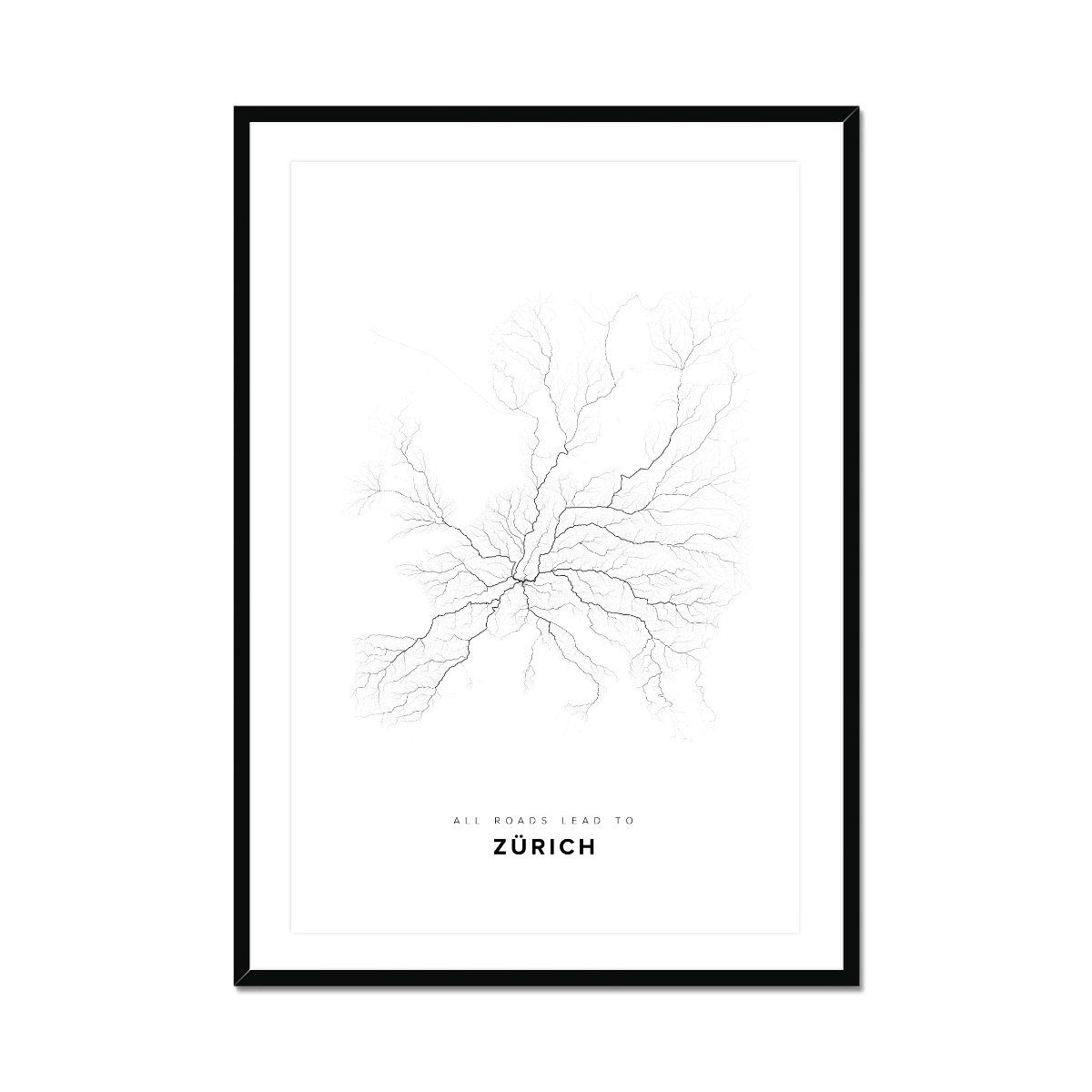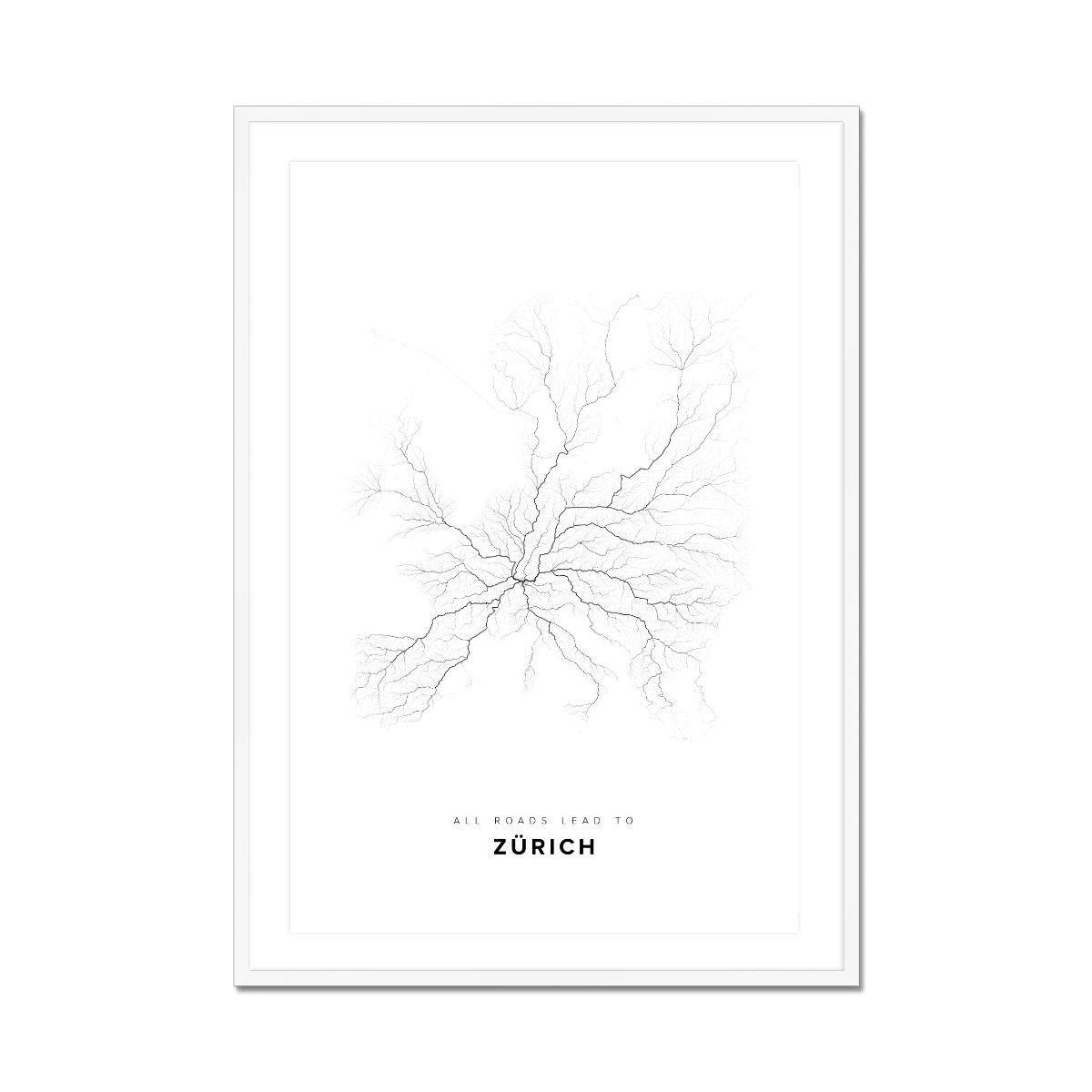 All roads lead to Zürich (Switzerland) Fine Art Map Print