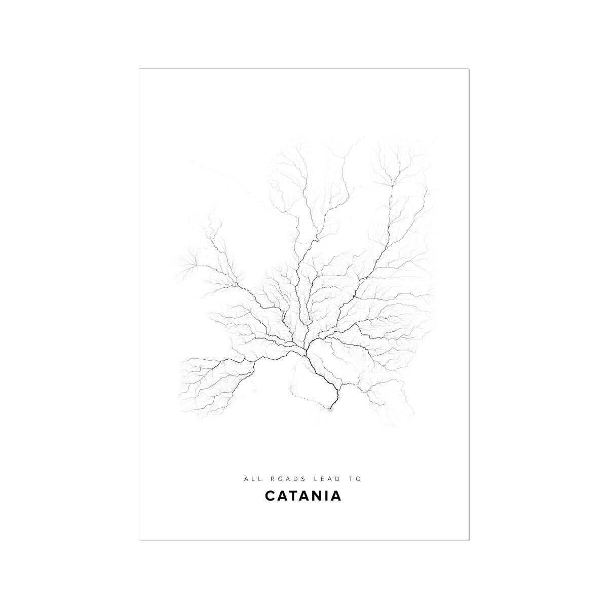 All roads lead to Catania (Italy) Fine Art Map Print