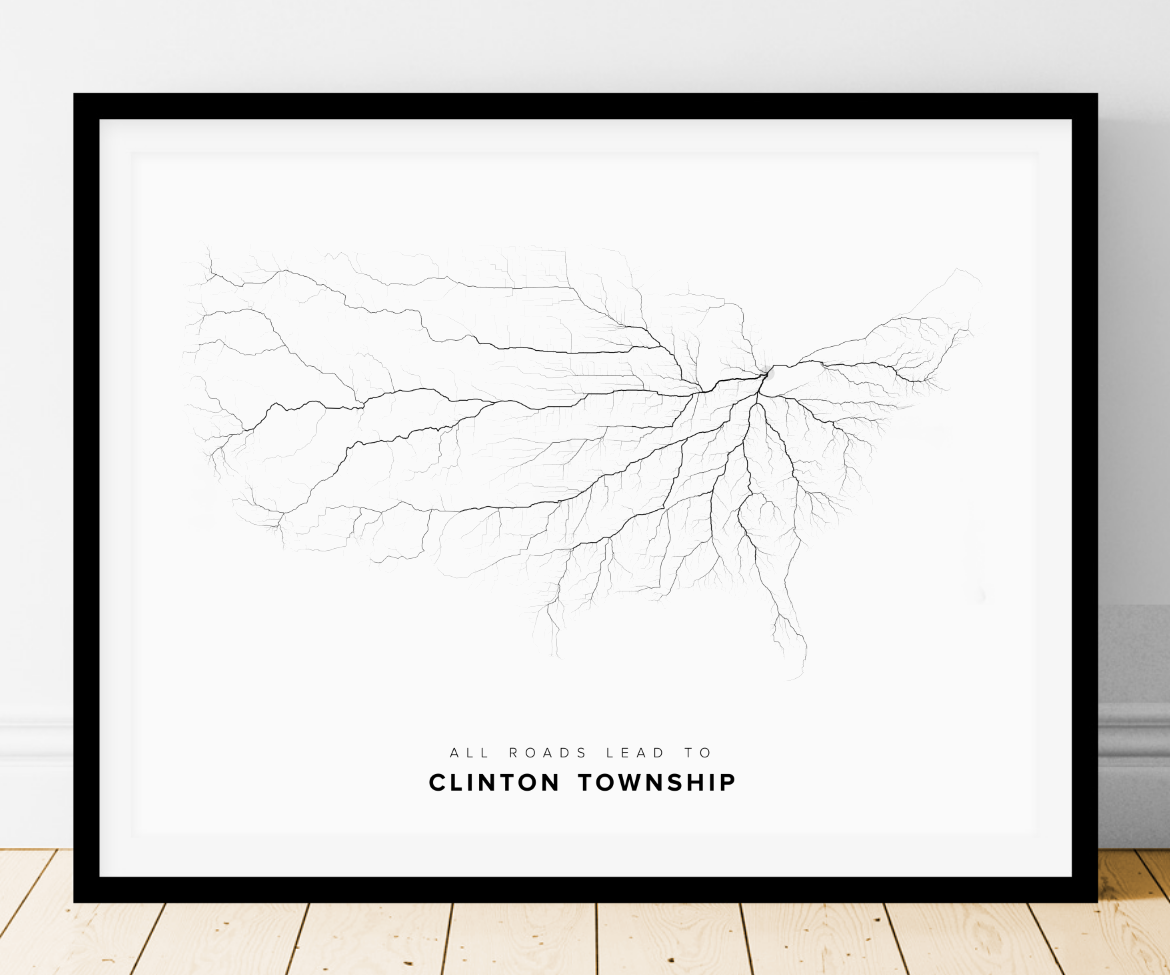 All roads lead to Clinton Township (United States of America) Fine Art Map Print
