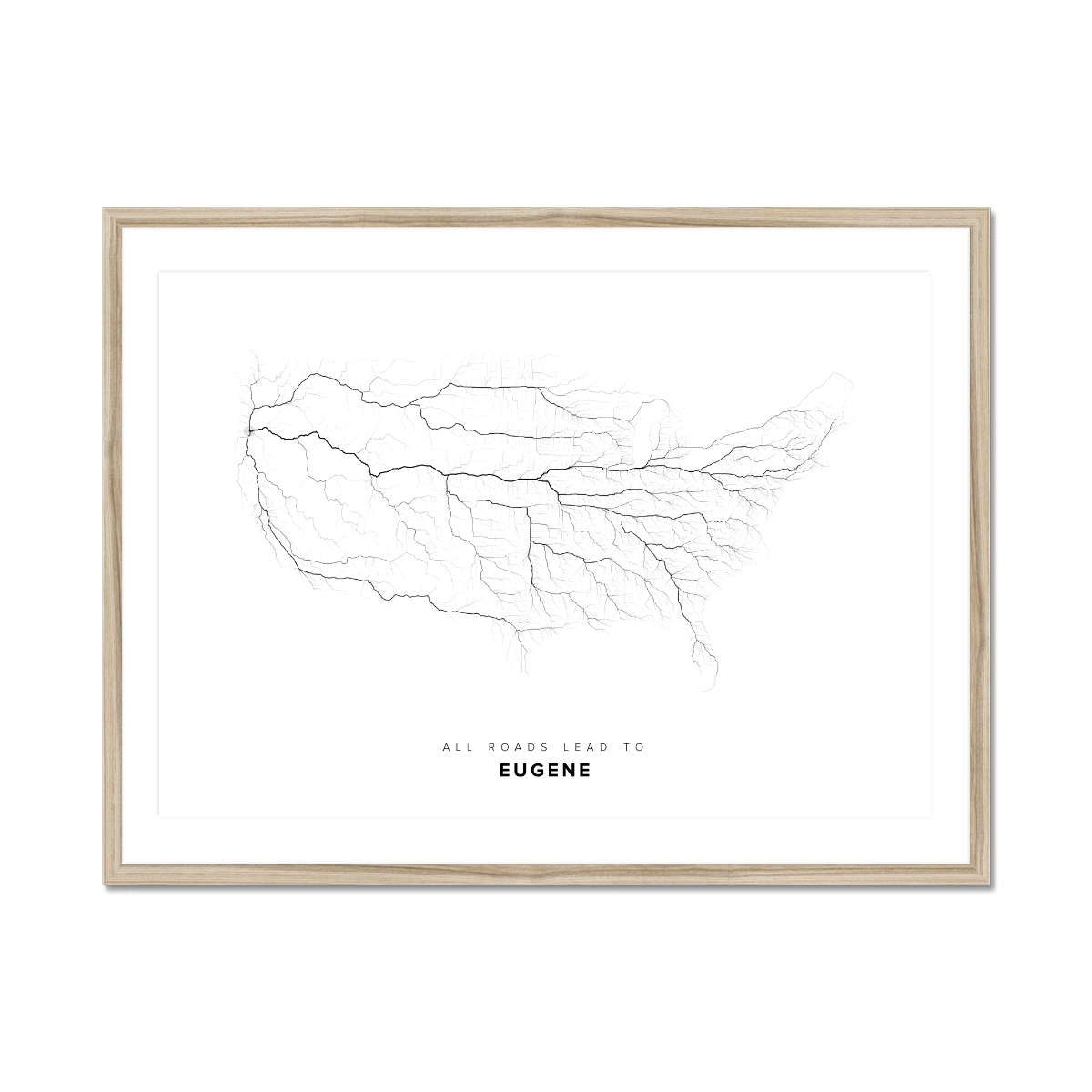 All roads lead to Eugene (United States of America) Fine Art Map Print