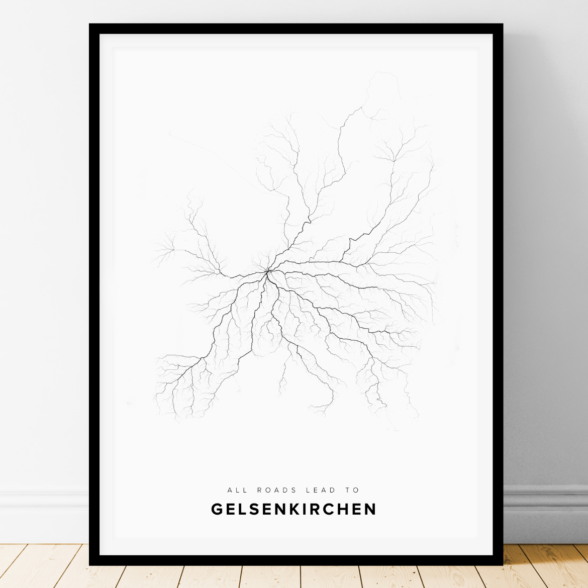 All roads lead to Gelsenkirchen (Germany) Fine Art Map Print