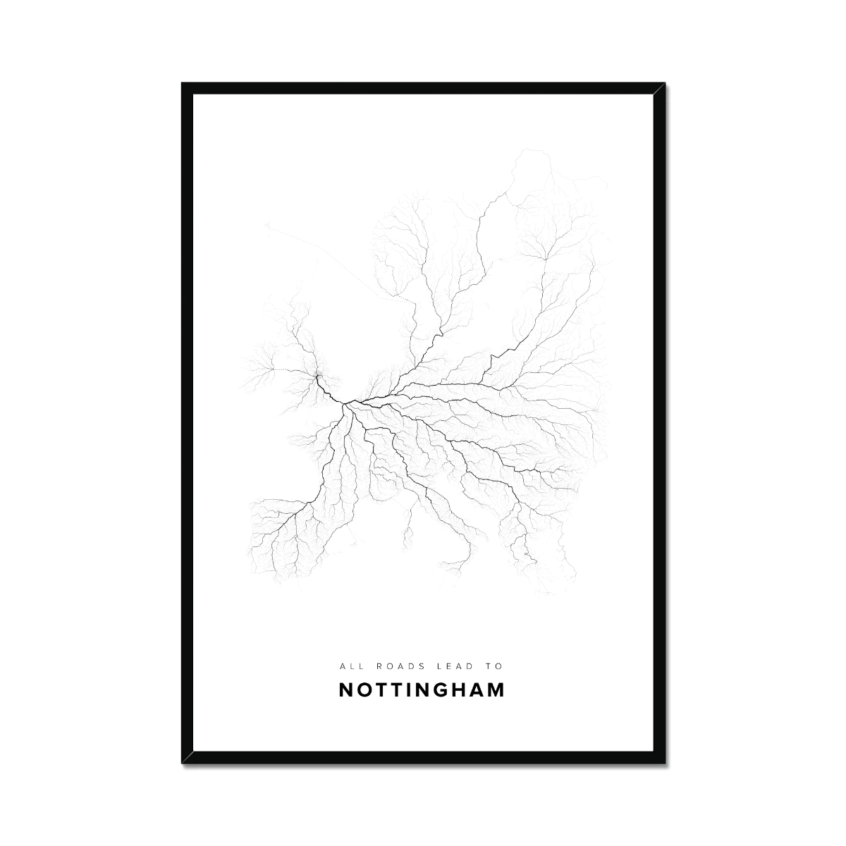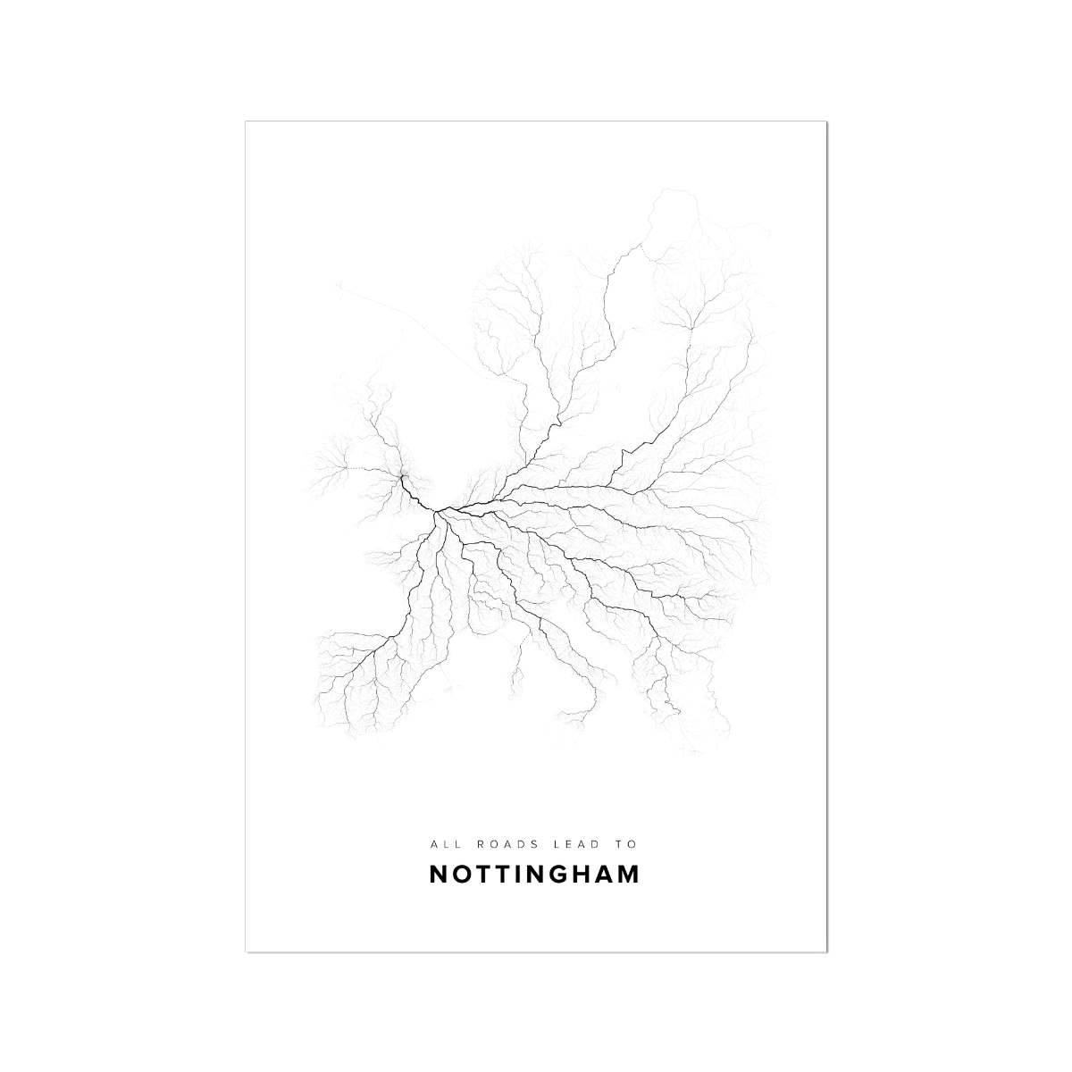 All roads lead to Nottingham (United Kingdom of Great Britain and Northern Ireland) Fine Art Map Print