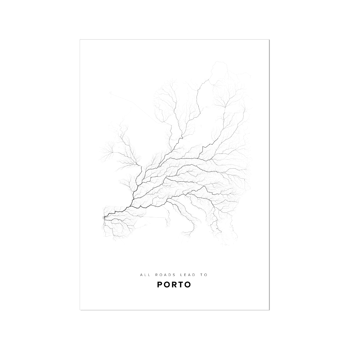 All roads lead to Porto (Portugal) Fine Art Map Print