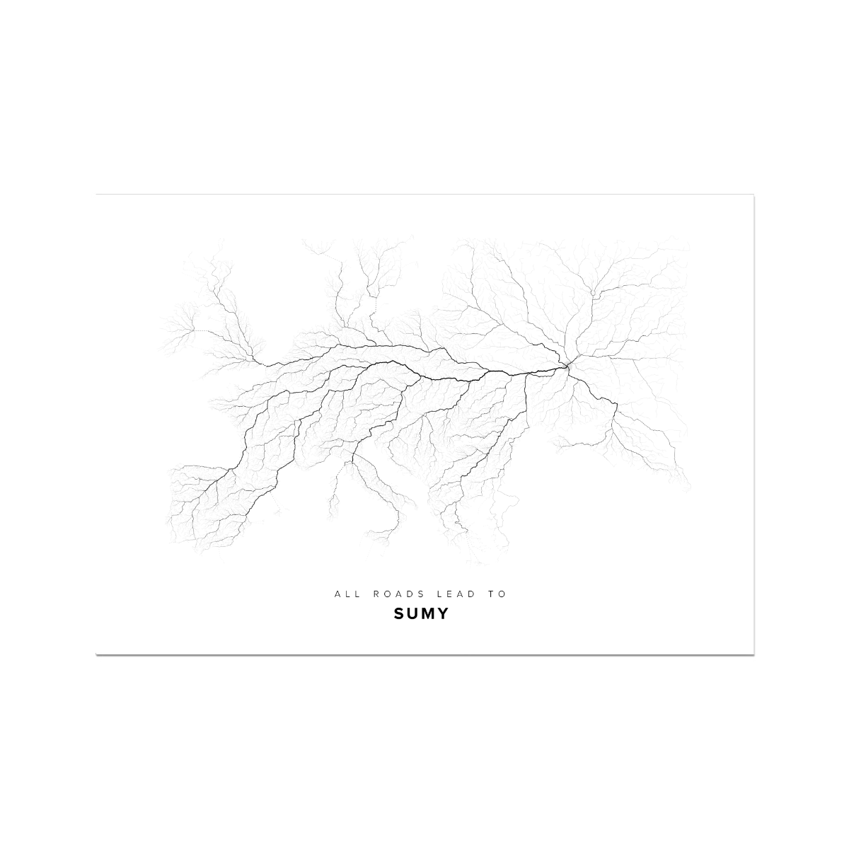 All roads lead to Sumy (Ukraine) Fine Art Map Print