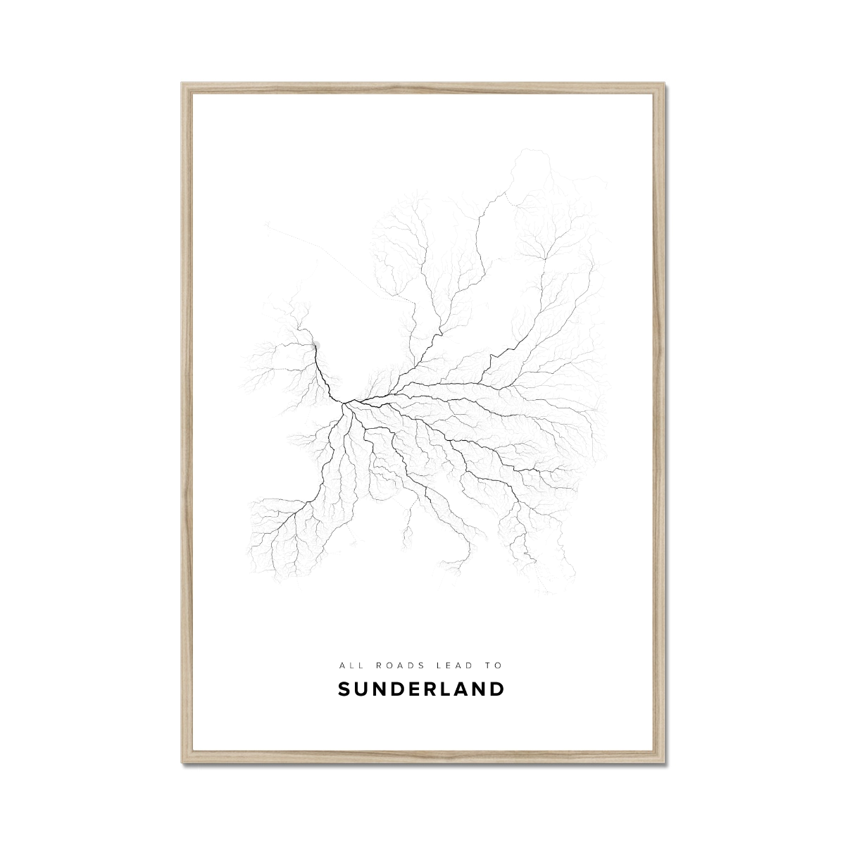 All roads lead to Sunderland (United Kingdom of Great Britain and Northern Ireland) Fine Art Map Print
