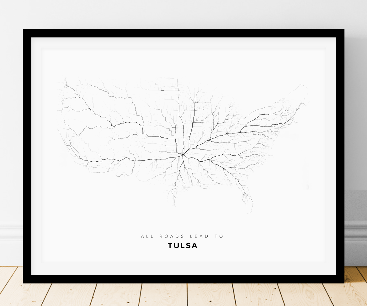 All roads lead to Tulsa (United States of America) Fine Art Map Print